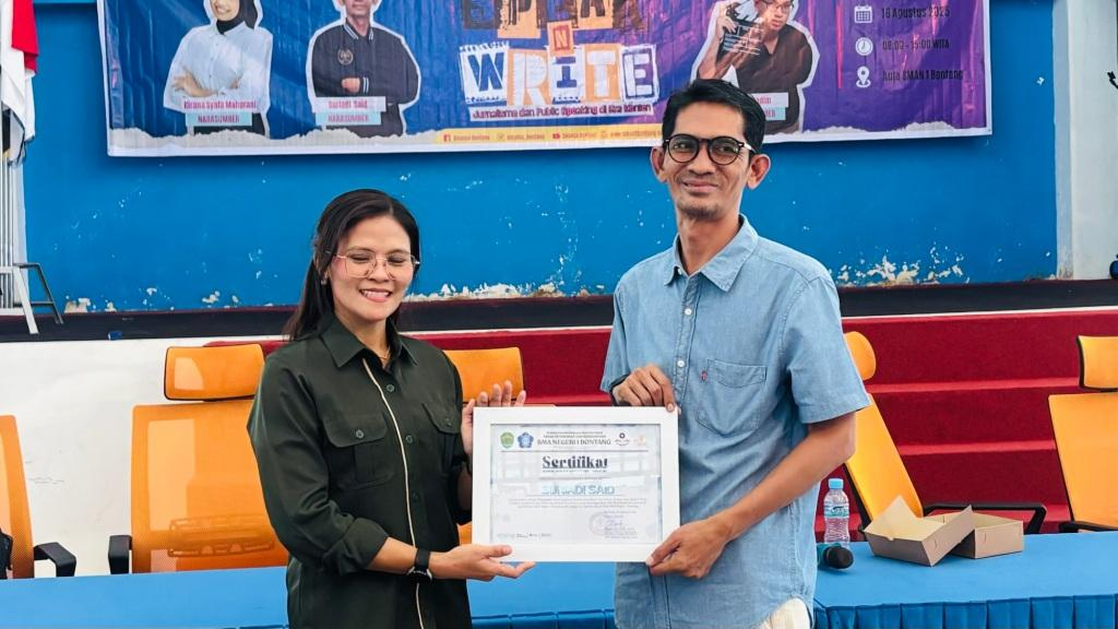 SMAN 1 Bontang menggelar Seminar Jurnalistik & Podcast pada Sabtu (16/8) di aula sekolah. Kegiatan ini mengangkat tema “Jurnalisme dan Public Speaking di Era Konten” dan bertujuan menumbuhkan kreativitas, minat, serta bakat siswa dalam menghasilkan konten yang berkualitas di era digital.
