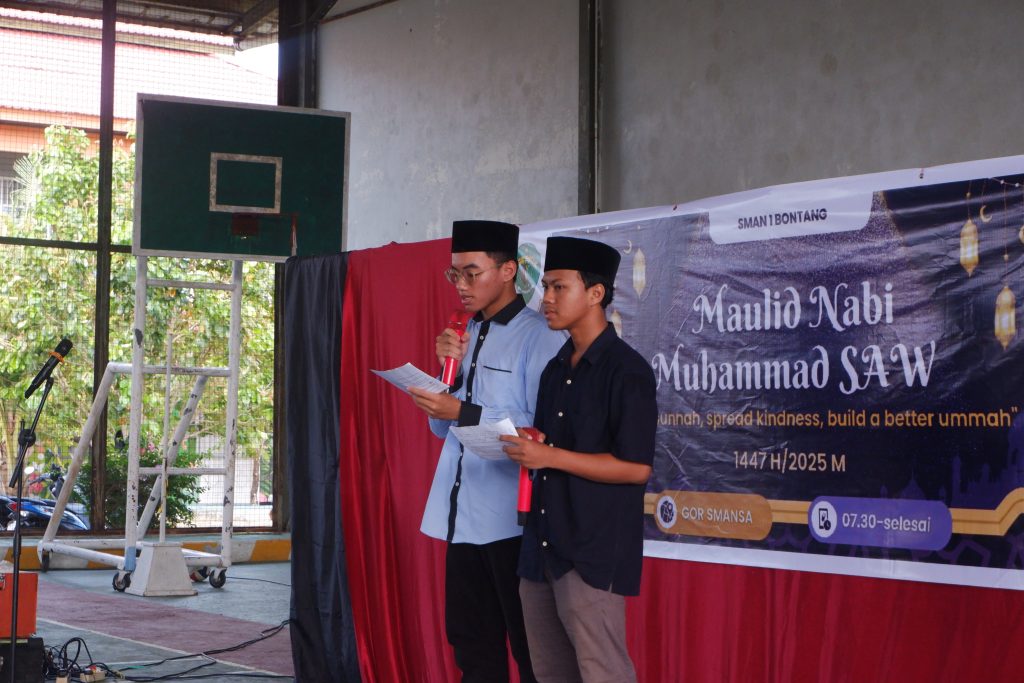 Bontang, 19 September 2025 — Suasana penuh suka cita dan kebersamaan tampak di GOR SMA Negeri 1 Bontang pada Jumat pagi (19/09/2025), ketika seluruh warga sekolah berkumpul untuk memperingati Maulid Nabi Muhammad SAW 1447 H. Kegiatan yang digelar dengan penuh kekhidmatan ini menjadi momentum penting bagi siswa, guru, dan seluruh keluarga