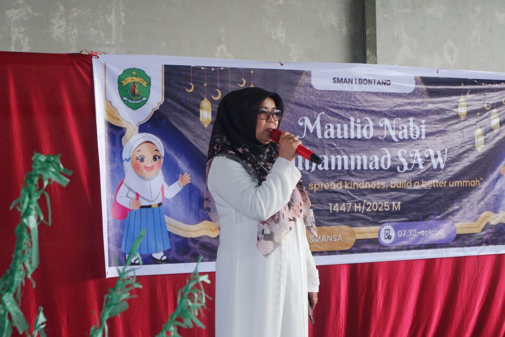 Acara dibuka melalui sambutan hangat dari Kepala SMA Negeri 1 Bontang, Ibu Sumariah S.Pd., M.Pd. Dalam sambutannya, beliau menekankan pentingnya menjadikan peringatan Maulid Nabi Muhammad SAW bukan hanya sebagai seremonial tahunan, melainkan sebagai ajang refleksi diri dan motivasi untuk semakin meneladani sifat-sifat terpuji Nabi Muhammad SAW dalam kehidupan sehari-hari.